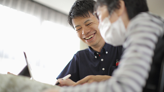 主には長い在宅生活の中で、体力が落ちてきてしまった方や、難病をお持ちで徐々に体の機能が低下してきてしまった方へのサポートが中心です。身の回りの動作以外にも、ご家族と一緒に以前よく作ってくれた「味噌汁」を作る、ひ孫への「プレゼント」を送る、遠くに住んでいる息子さんへの「メール」を作成するといった活動(作業)を通して他の人との繋がりが持てる機会や時間を大切に思っています。